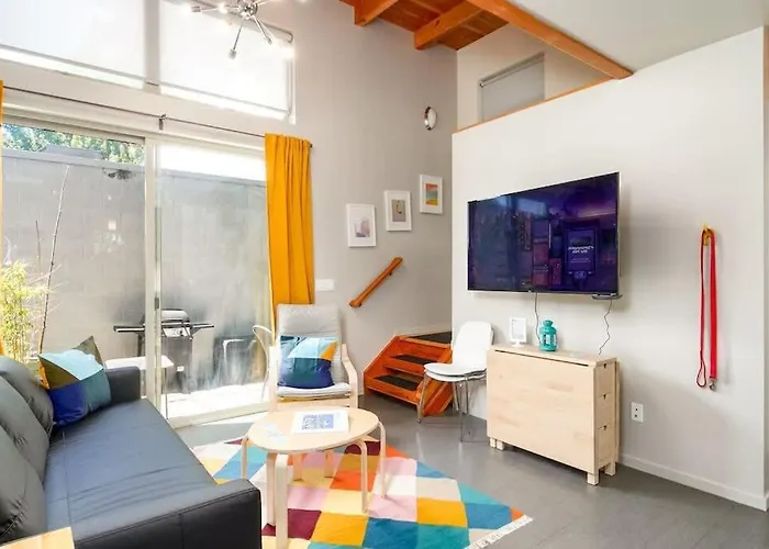 Portland International airport can be reached within 20 minutes drive, and natural attractions like Mill Ends Park are 2.6 km away. Shopping fans will enjoy the proximity to the shopping mall "Lloyd Center", located 2.7 km away. Educational highlights situated approximately a 10-minute ride from #Stayinmydistrict Buckman Spacious Modern Rowhouse include Keller Auditorium.